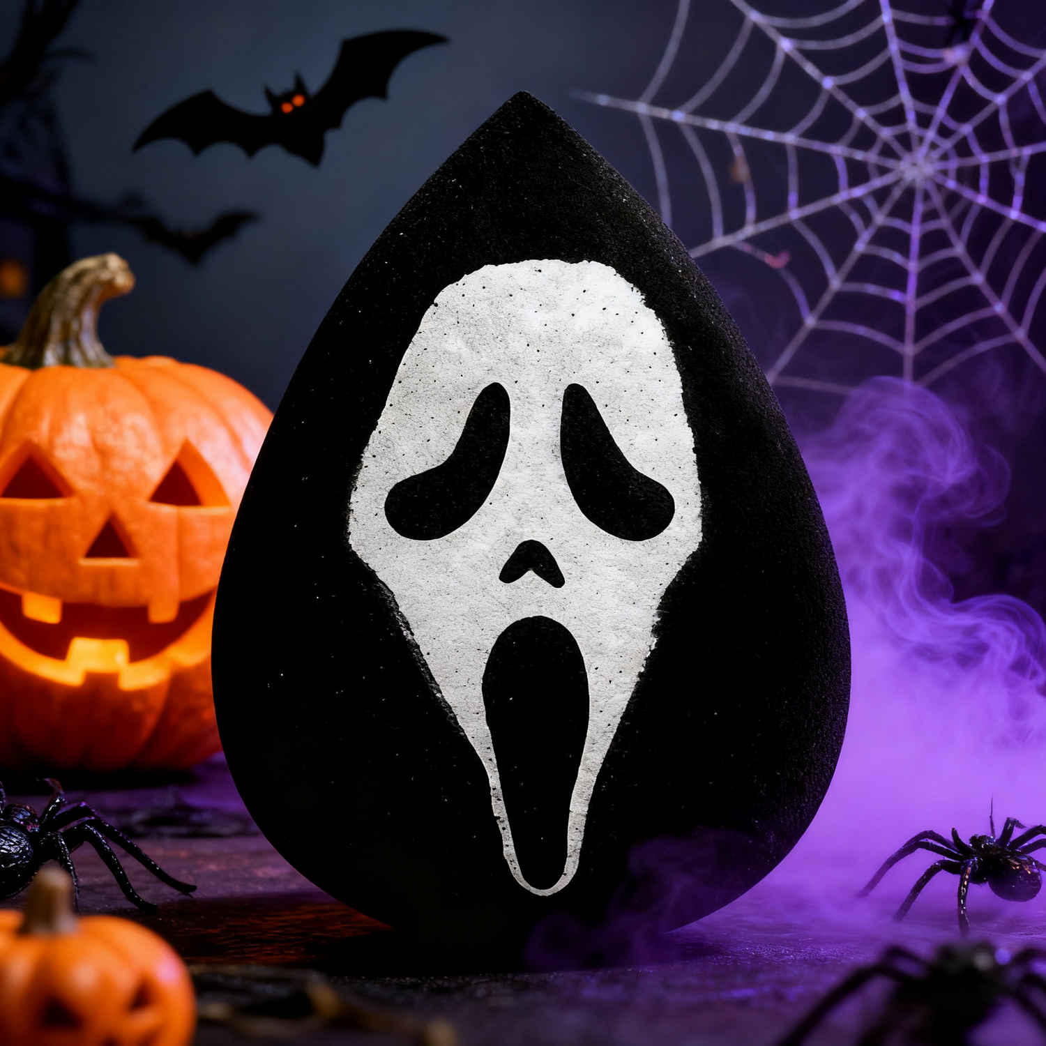 Ghostface XL Sponge melts foundation, sharpens contour, and smooths even heavy Halloween makeup — for a flawless, spooky-glam finish.